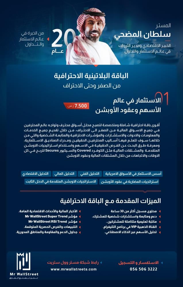 باقة احترافية متكاملة صممت خصيصًا لكل من يرغب بدخول عالم الأسهم الأمريكية وعقود الأوبشن بثقة واحترافية، من الصفر وحتى الوصول لمستوى النخبة. لا نعلمك فقط، بل نقدم لك تجربه لا مثيل لها لكل ما يحتاجه المستثمر الحقيقي للنجاح،