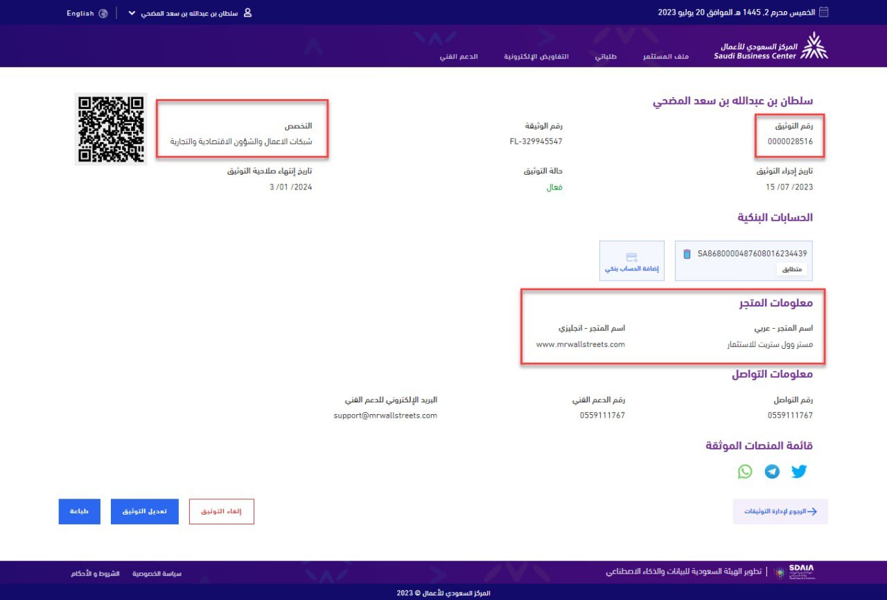للاستتفسار عن توثيق المتجر إلكتروني لدى المركز السعودي للأعمال